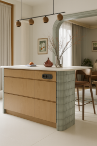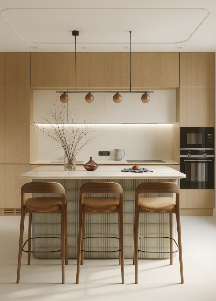 By combining natural wood, matte finishes, and subtle metallic accents, this kitchen embodies effortless modern living — functional, stylish, and welcoming.
